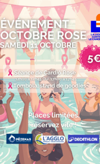 Dans le cadre de la campagne nationale Octobre Rose, le centre aquatique Ô Pézenas s’est mobilisé aux côtés de DECATHLON Agde pour soutenir la Ligue contre le Cancer. Deux séances spéciales Cardiô Rose ont été organisées le samedi 11 octobre 2025, de 12h00 à 12h45 et de 17h00 à 17h45, réunissant plus de 70 participants venus partager un moment sportif, solidaire et convivial.